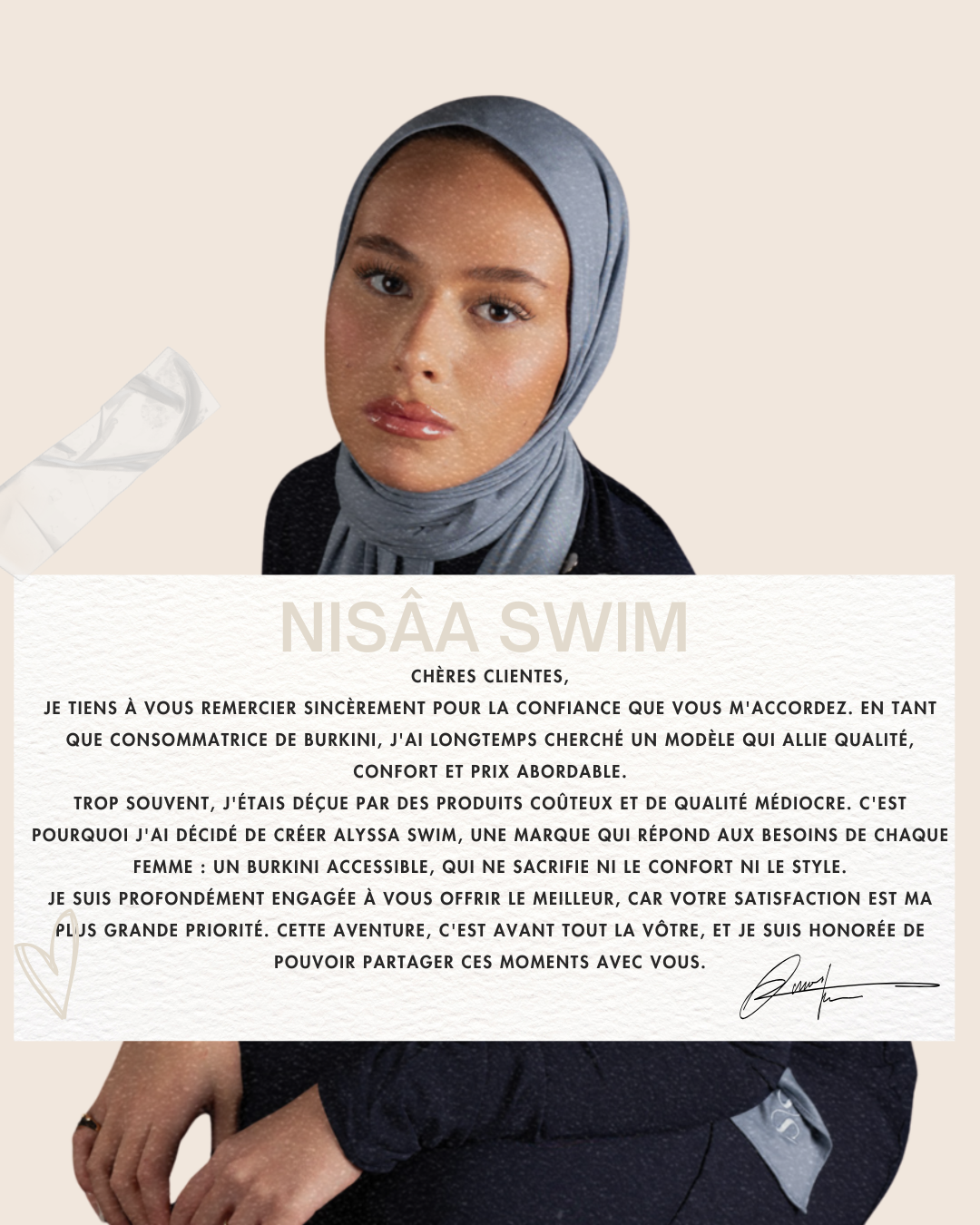 Je cherchais un burkini qui change un peu des modèles classiques en legging, et là c’est le top avec la coupe oversize. Le voile est inclus du meme tissue que le burkini c'est hyper agréable et sèche ultra rapidement. J’ai reçu plein de compliments à la piscine et franchement, vu le prix, foncez !